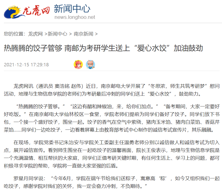 【龍虎網】熱騰騰的餃子管夠 南郵為考研學生送上“愛心水餃”加油鼓勁