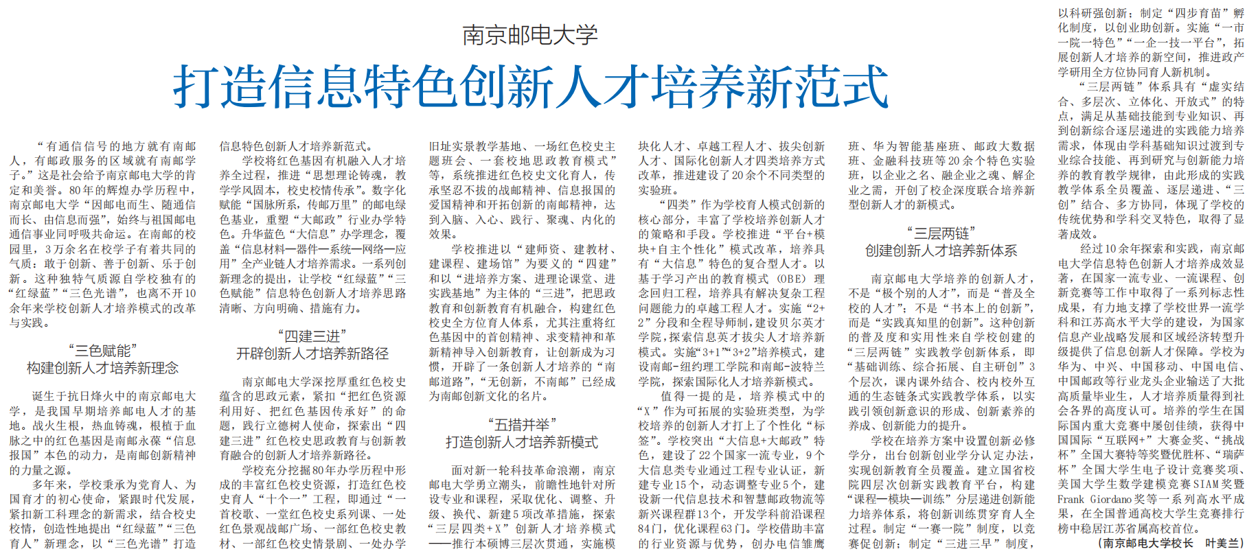 【中國教育報】南京郵電大學(xué) 打造信息特色創(chuàng)新人才培養(yǎng)新范式