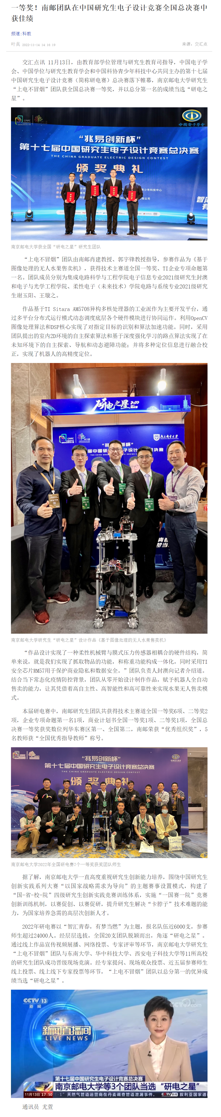 【新華日報客戶端】一等獎!南郵團隊在中國研究生電子設計競賽全國總決賽中獲佳績