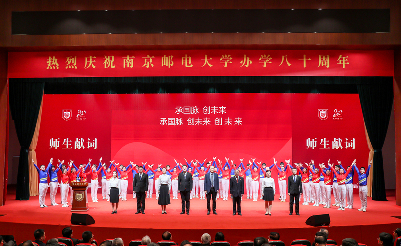 校長(zhǎng)葉美蘭代表學(xué)校作了題為《八秩承國(guó)脈 一流創(chuàng)未來(lái)》的高質(zhì)量發(fā)展報(bào)告。她回望南郵因郵電而生,隨通信而長(zhǎng),由信息而強(qiáng)的八十年辦學(xué)歷程,抗日烽火中,熱血鑄魂,南郵人戰(zhàn)火生根、精神鑄就,為黨培育紅色郵電英才;共和國(guó)初創(chuàng)時(shí),篳路藍(lán)縷,南郵人艱苦創(chuàng)建、勇毅前行,為新中國(guó)建設(shè)培養(yǎng)綠色通信人才;改革開(kāi)放后,勇立潮頭,南郵人務(wù)實(shí)進(jìn)取、敢為人先,為祖國(guó)繁榮富強(qiáng)培養(yǎng)藍(lán)色信息人才。八十載國(guó)脈擔(dān)當(dāng),八十載信息報(bào)國(guó),南郵從抗戰(zhàn)烽火中走來(lái),沿著共和國(guó)的紅色大道,留下了八十載與黨和國(guó)家同向同行的奮進(jìn)足跡。南郵的80年,是傳承紅色基因、賡續(xù)紅色血脈的80年;是堅(jiān)持立德樹(shù)人、哺育桃李芬芳的80年;是服務(wù)國(guó)家需要、緊跟戰(zhàn)略布局的80年。近十年來(lái),南京郵電大學(xué)扎根中國(guó)大地,以“調(diào)結(jié)構(gòu),促轉(zhuǎn)型;補(bǔ)短板,上水平;強(qiáng)特色,創(chuàng)一流”的戰(zhàn)略思想為指引,開(kāi)創(chuàng)了內(nèi)涵發(fā)展全面提升的黃金時(shí)期。這十年,是學(xué)校轉(zhuǎn)型發(fā)展、勇攀一流的新十年;是學(xué)校提升規(guī)模、追求卓越的新十年;是學(xué)校創(chuàng)新引領(lǐng)、屢結(jié)碩果的新十年。面向未來(lái),在實(shí)施科教興國(guó)戰(zhàn)略、人才強(qiáng)國(guó)戰(zhàn)略、創(chuàng)新驅(qū)動(dòng)發(fā)展戰(zhàn)略的進(jìn)程中,全體南郵人將賡續(xù)紅色基因,懷抱山河、情懷家國(guó);將矢志追求卓越,馳而不息、勇創(chuàng)一流;將堅(jiān)持傳承創(chuàng)新,特色發(fā)展、篤行致遠(yuǎn)。攜手并肩,錨定一流、接續(xù)奮斗,在建設(shè)國(guó)家一流學(xué)科和江蘇高水平大學(xué)、向研究型大學(xué)轉(zhuǎn)型的道路上披荊斬棘、砥礪前行!在實(shí)現(xiàn)中華民族偉大復(fù)興的征程中燃燒激情、揮灑汗水!共建偉大祖國(guó),共創(chuàng)美好南郵!