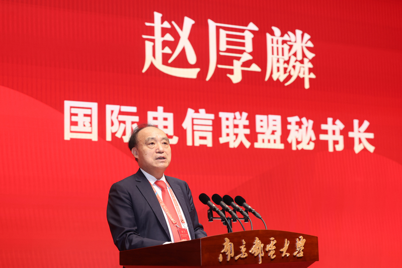 國(guó)際電信聯(lián)盟秘書(shū)長(zhǎng)、我校杰出校友趙厚麟深情致辭。他表示在國(guó)際電聯(lián)總部日內(nèi)瓦工作期間見(jiàn)證了偉大祖國(guó)為國(guó)際通信事業(yè)作出的巨大貢獻(xiàn),令他感受到了“中國(guó)速度”。他指出,一代代南郵人秉承“厚德、弘毅、求是、篤行”的校訓(xùn),在信息科技前沿領(lǐng)域,處處皆有南郵人的身影。學(xué)校辦學(xué)80年來(lái)碩果累累,他希望師生校友傳承紅色基因,賡續(xù)紅色精神,不忘初心使命,在黨的二十大精神的指引下,抓住機(jī)遇,乘勢(shì)而上,在世界一流學(xué)科和江蘇高水平大學(xué)高峰計(jì)劃建設(shè)道路上行穩(wěn)致遠(yuǎn),努力探索出一條依托郵電通信行業(yè)做專(zhuān)做精、面向信息化社會(huì)做大做強(qiáng)的大信息特色發(fā)展之路,向新時(shí)代輸送一批又一批優(yōu)秀信息人才。