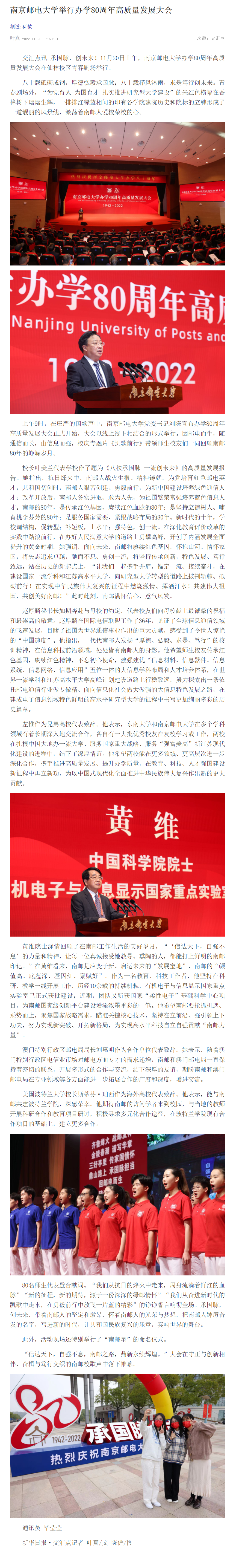 【新華日報客戶端】南京郵電大學舉行辦學80周年高質量發展大會