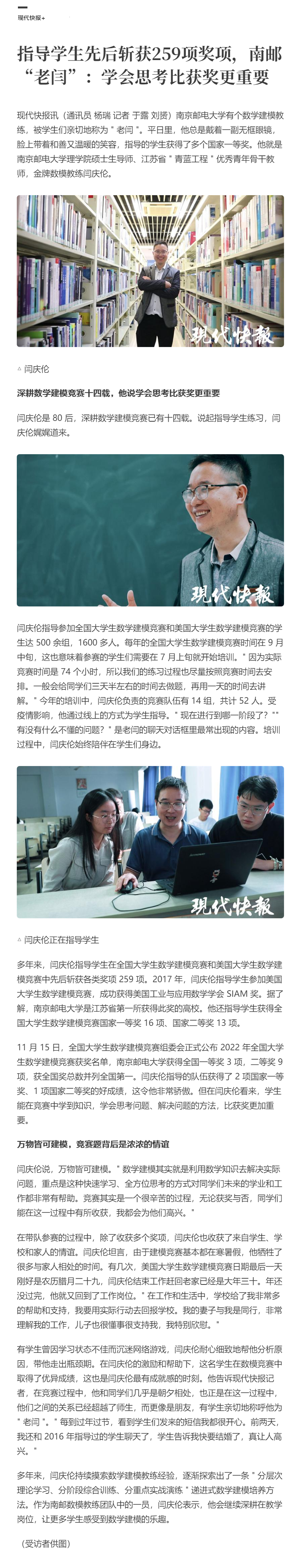 【現(xiàn)代快報全媒體】指導學生先后斬獲259項獎項,南郵“老閆”:學會思考比獲獎更重要
