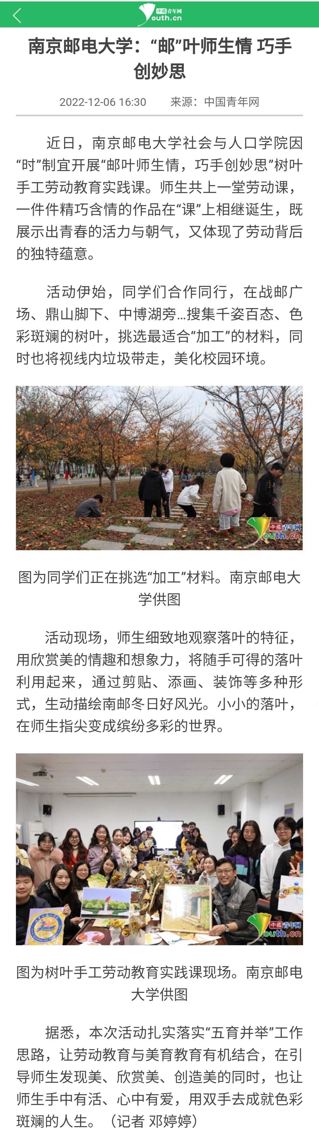 【中國青年網】南京郵電大學:“郵”葉師生情 巧手創妙思