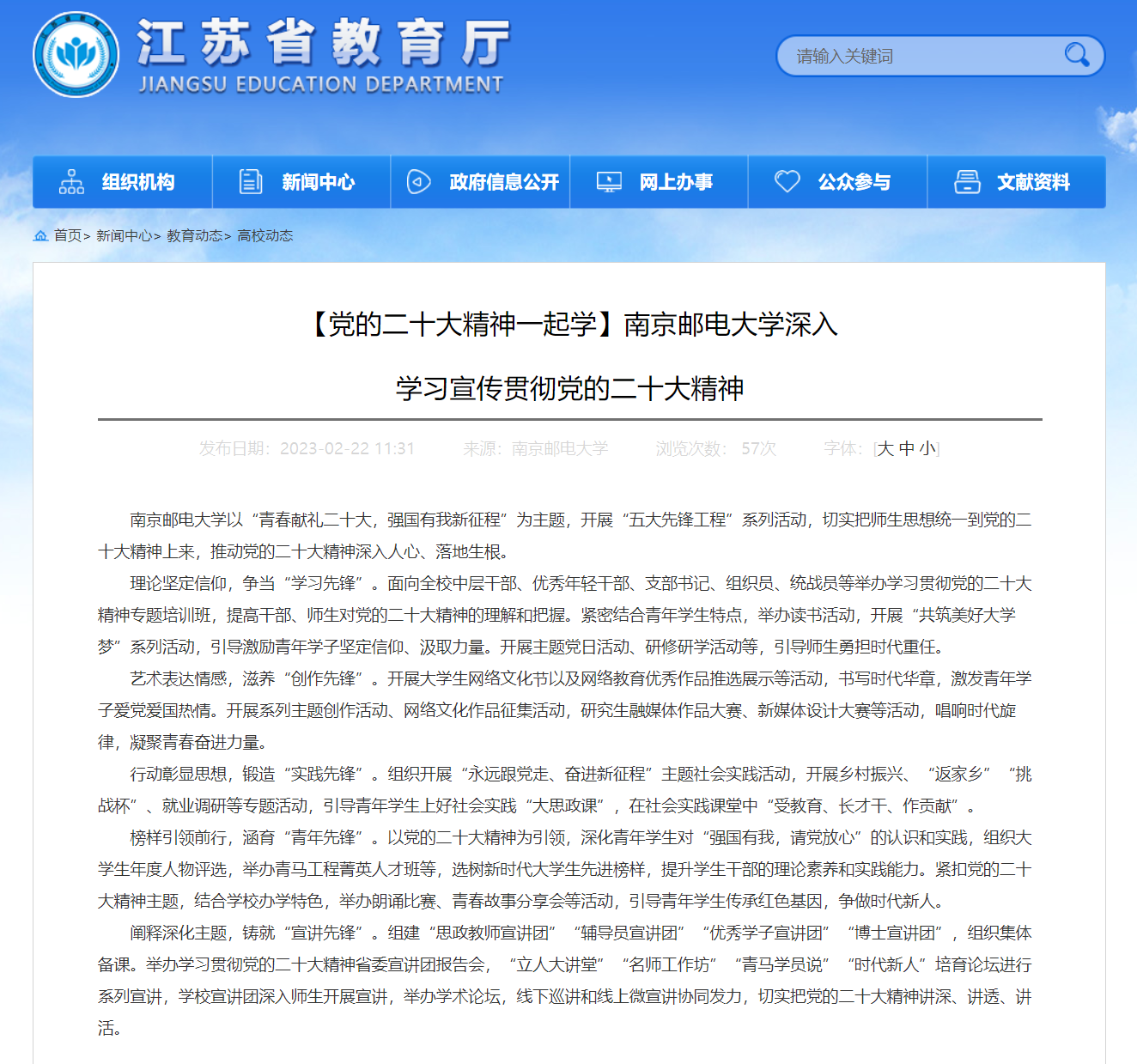 【省教育廳官網】 南京郵電大學深入學習宣傳貫徹黨的二十大精神