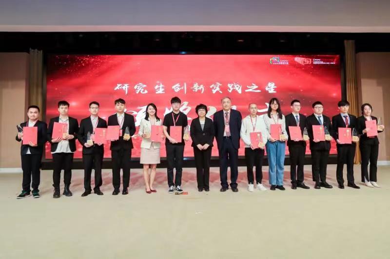 教育部黨組成員、副部長翁鐵慧為清華大學、復旦大學、上海交通大學、同濟大學、武漢大學、中山大學、南京郵電大學等11所高校的12支參賽團隊頒發(fā)“研究生創(chuàng)新實踐之星”獎杯和證書。