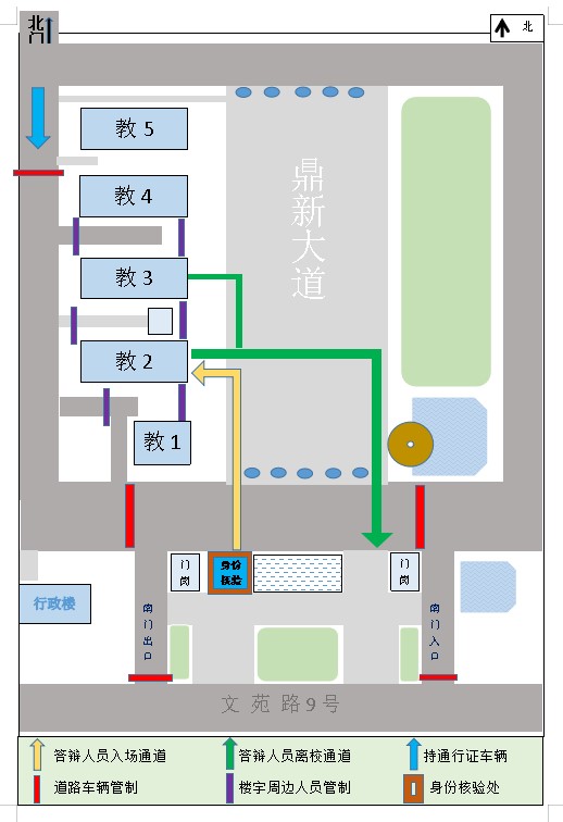1. 禁止一切機動車輛進出南門(10月29日6:00-18:00)。因南門周邊區域布設答辯人員專用通道,周邊道路須實施交通管制,禁止一切機動車輛進出南門。教職員工機動車請從北門進出校園。