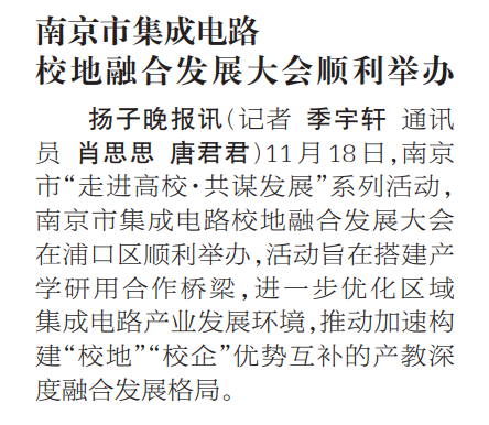 【揚子晚報】南京市集成電路 校地融合發展大會順利舉辦