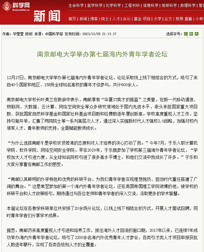 【科學網】南京郵電大學舉辦第七屆海內外青年學者論壇