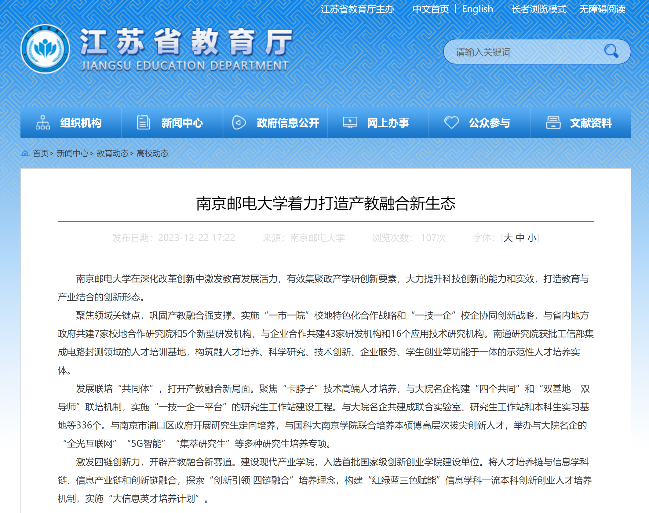 【省教育廳官網】南京郵電大學著力打造產教融合新生態