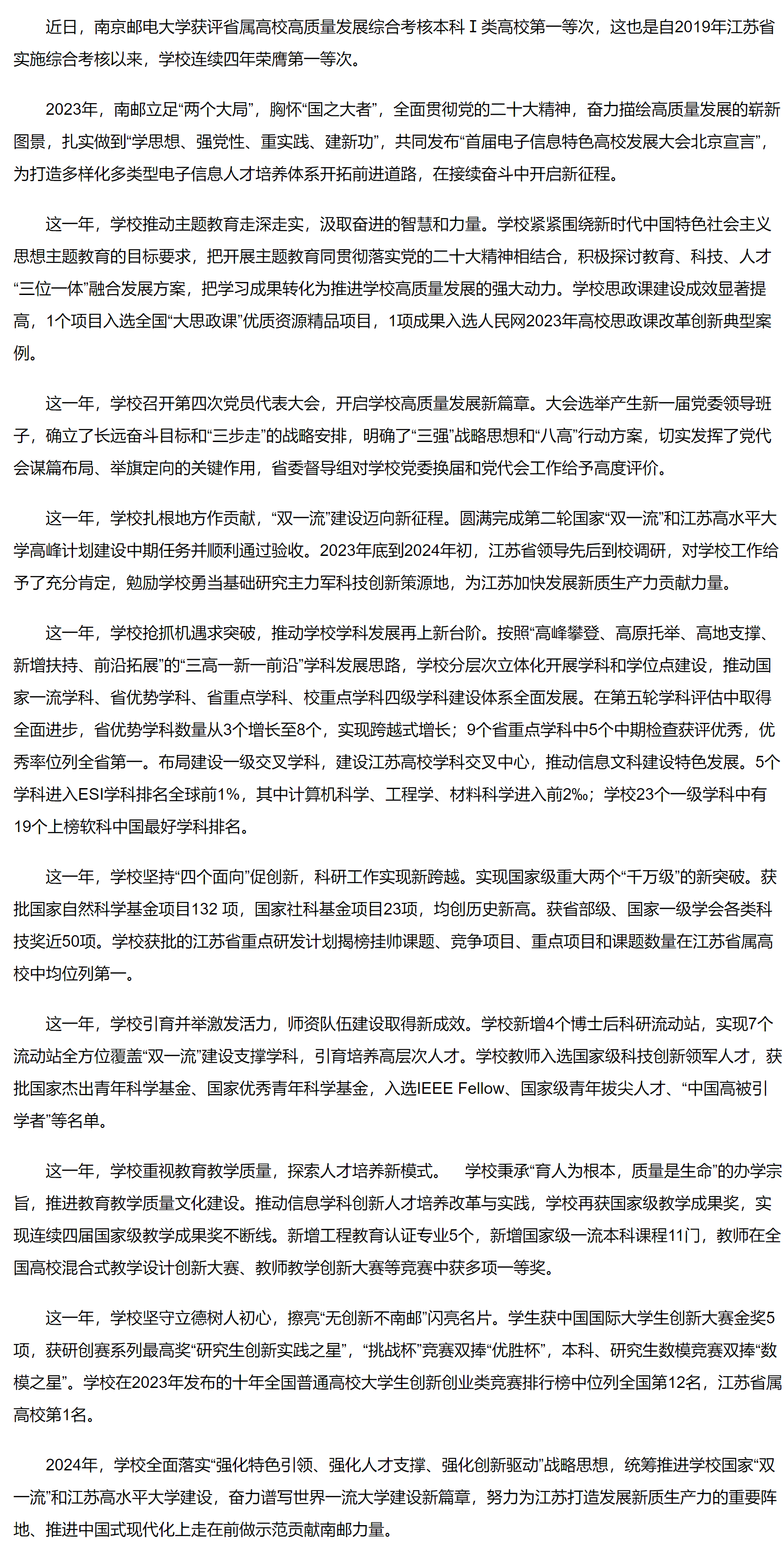 【新華網】南郵連續四年榮獲省屬高校高質量發展綜合考核第一等次