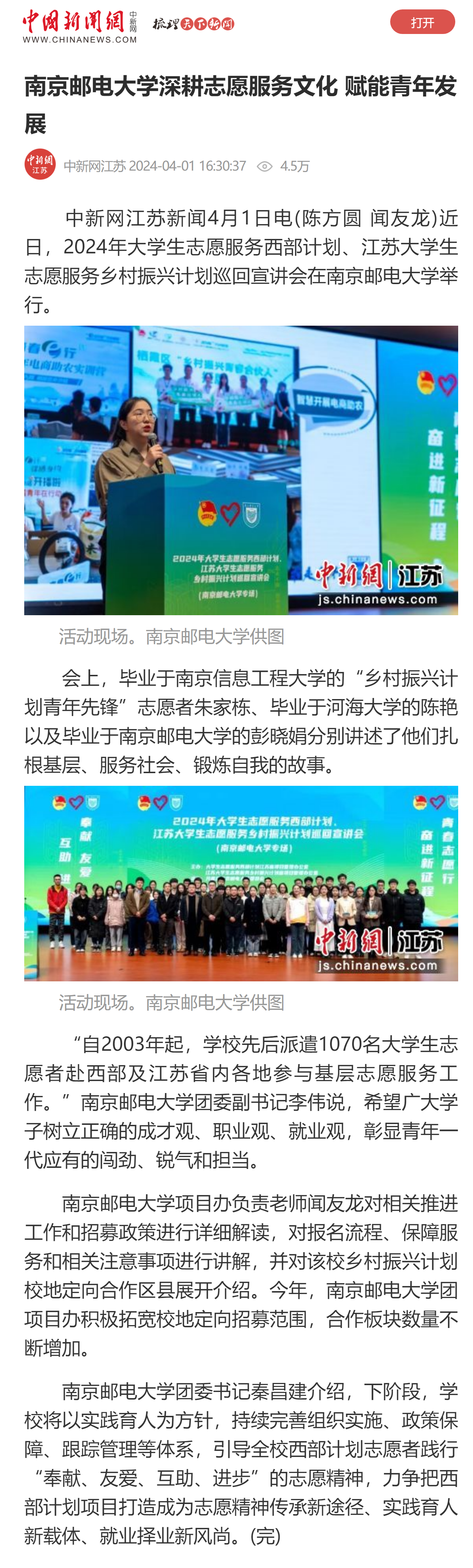 【中國新聞網(wǎng)】南京郵電大學(xué)深耕志愿服務(wù)文化 賦能青年發(fā)展