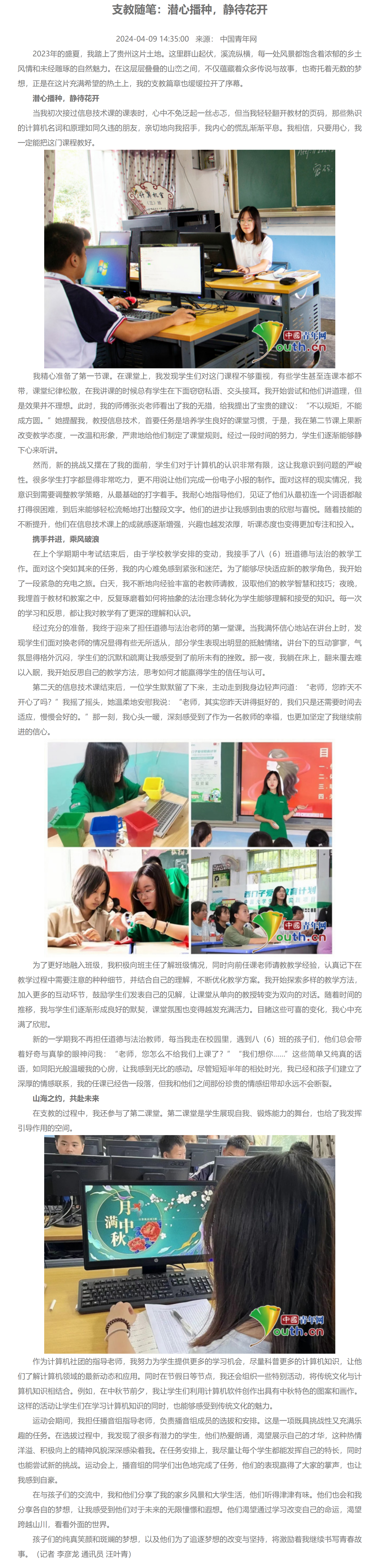 【中國青年網】支教隨筆:潛心播種,靜待花開