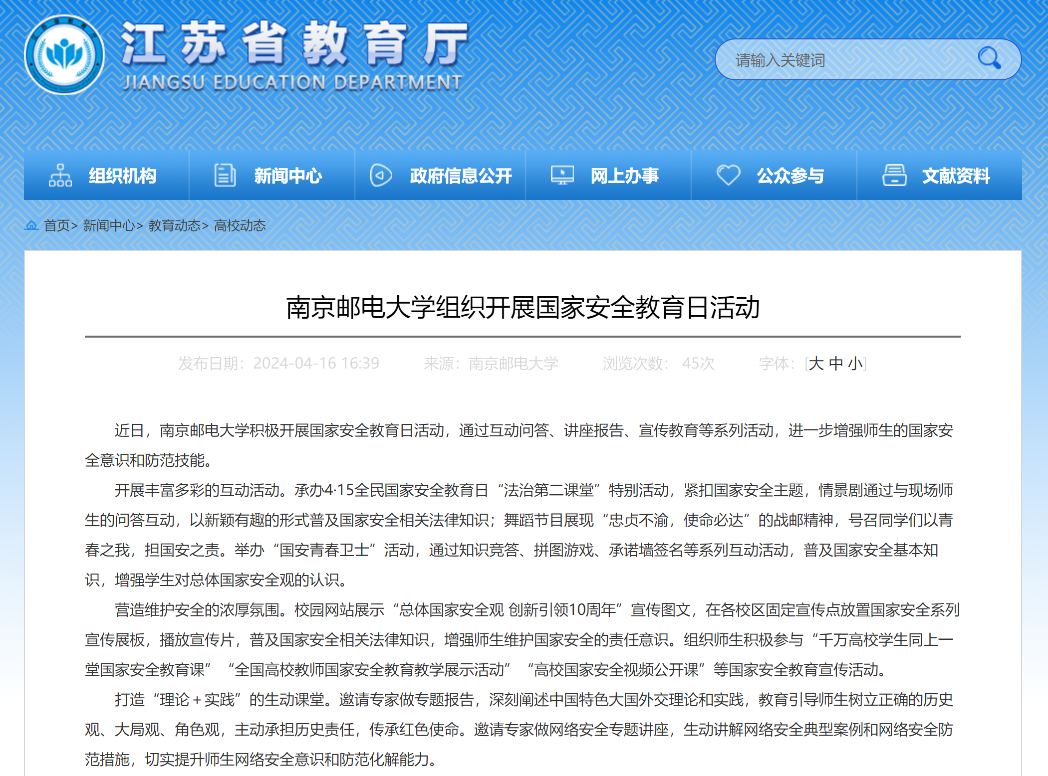 【省教育廳官網】南京郵電大學組織開展國家安全教育日活動