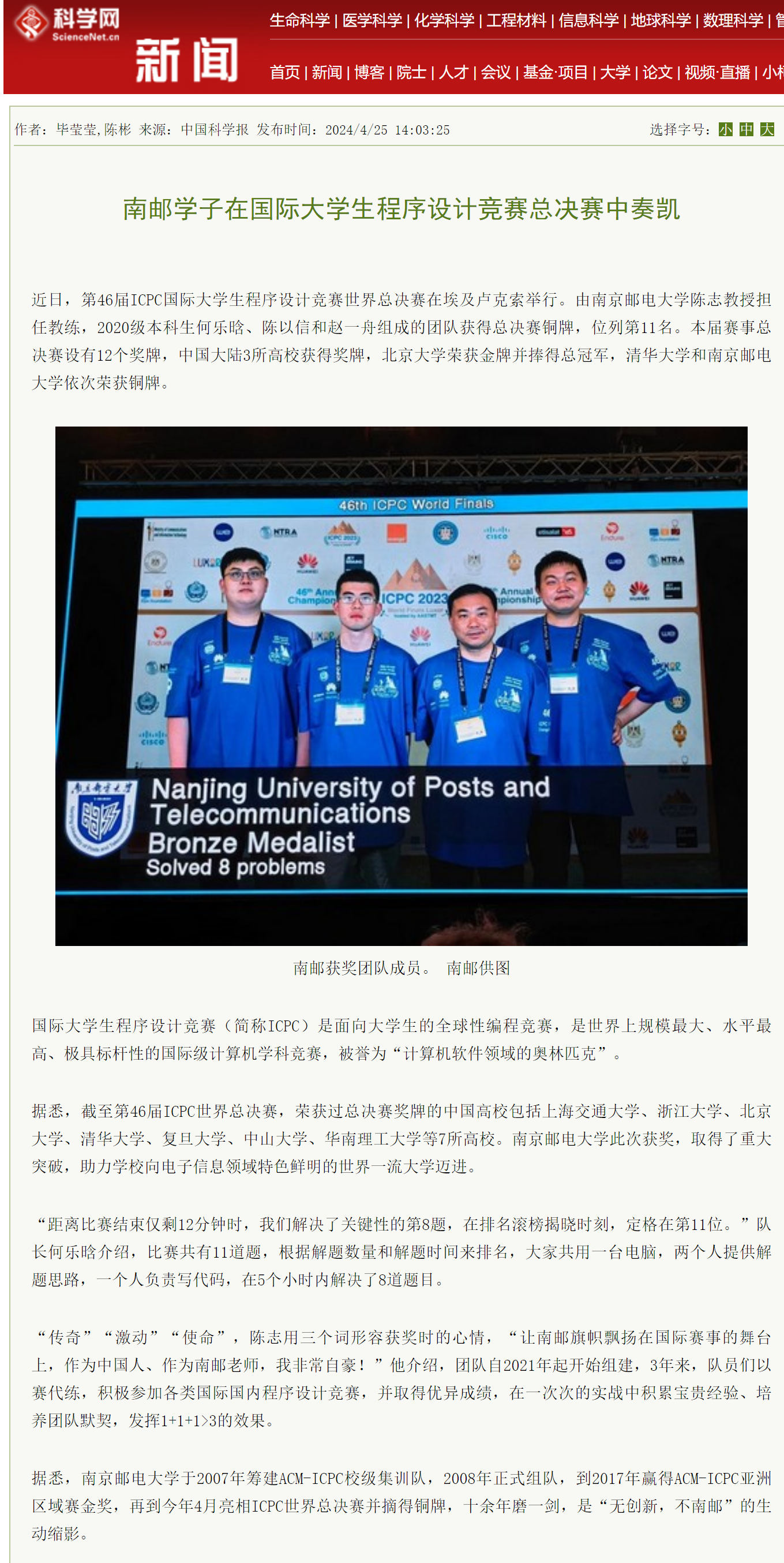 【科學(xué)網(wǎng)】南郵學(xué)子在國(guó)際大學(xué)生程序設(shè)計(jì)競(jìng)賽總決賽中奏凱