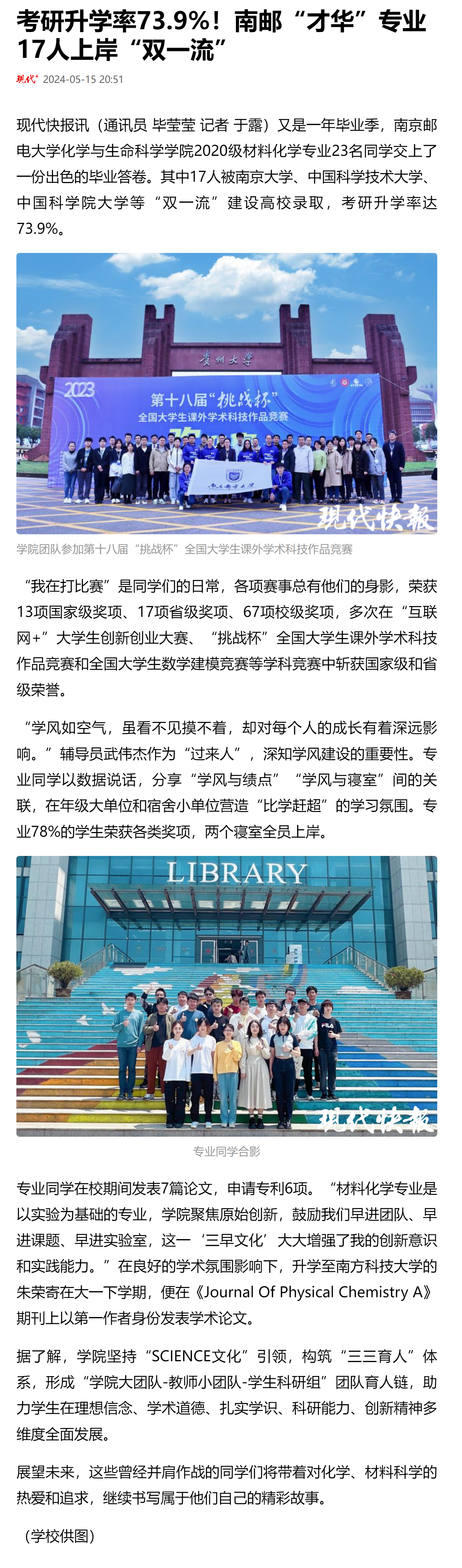 【現代快報全媒體】考研升學率73.9%!南郵“才華”專業17人上岸“雙一流”