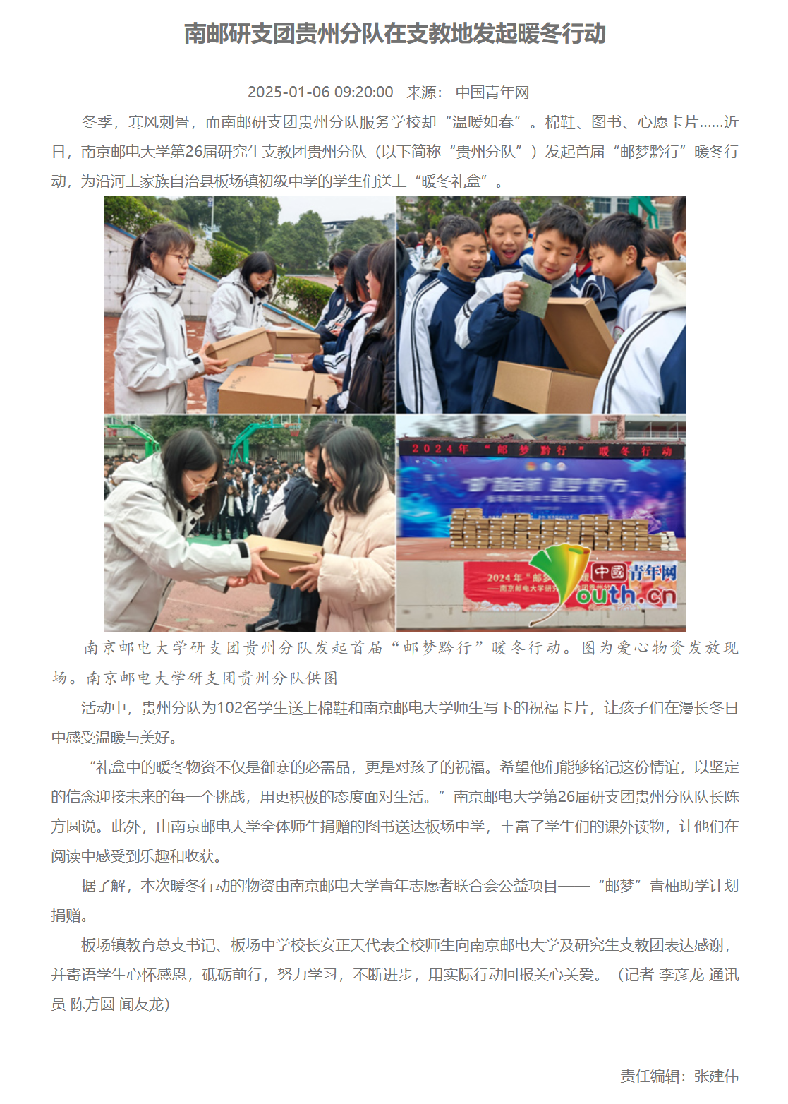 【中國青年網】南郵研支團貴州分隊在支教地發起暖冬行動