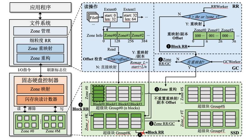 6月22日至25日,南京郵電大學尹捷明教授團隊李駿、陳小柏、尹捷明老師在第62屆設計自動化會議(Design Automation Conference, DAC 2025)發(fā)表題為FineRR-ZNS: Enabling Fine-Granularity Read Refreshing for ZNS SSDs的研究論文。DAC是中國計算機學會推薦的A類國際學術會議,由美國計算機協會(ACM)和電氣與電子工程師協會(IEEE)聯合主辦,是電子設計自動化(EDA)領域的頂級會議。該研究針對分區(qū)命名空間固態(tài)硬盤(ZNS SSD)中區(qū)域級讀刷新機制導致的數據遷移開銷過大的問題,提出了一種細粒度讀刷新機制FineRR-ZNS。該方案采用主機控制的塊級選擇性刷新策略,通過元數據重映射技術實現精準刷新區(qū)塊定位,并設計了區(qū)域重構方法,在確保數據完整性的同時優(yōu)先訪問重映射數據,直至對應數據塊需要再次刷新。實驗結果表明,該機制可平均提升I/O吞吐率28.2%,同時提高41.8%的存儲空間利用率。