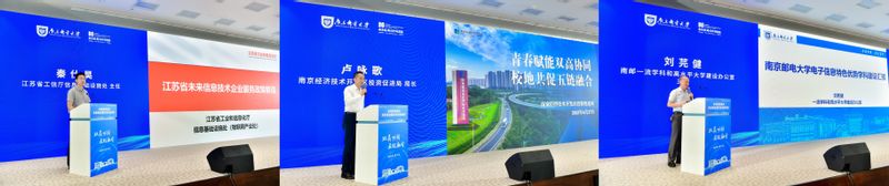 6月27日,江蘇教育界與產業界對話對接——“雙高協同·五鏈融合”未來信息技術高質量發展對話對接活動在南京新港國家高新技術產業園舉行。活動由省教育廳主辦,南京郵電大學、南京經濟技術開發區管理委員會、江蘇省有機電子與信息顯示協同創新中心、江蘇省物聯網技術與應用協同創新中心共同承辦。