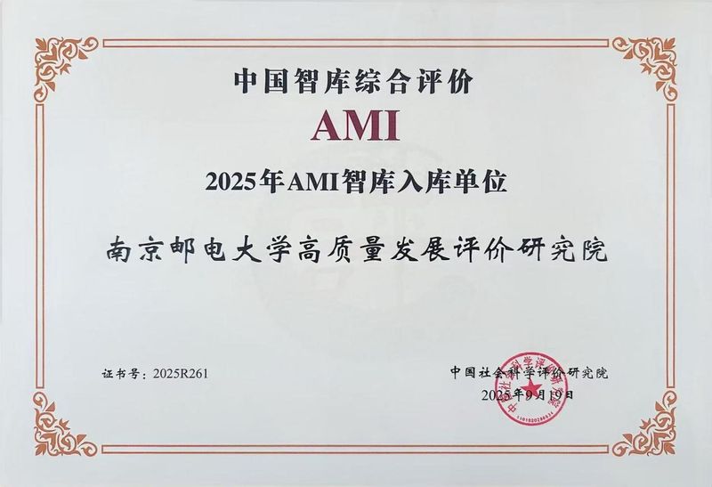 南京郵電大學高質量發展評價研究院入選“2025年AMI智庫入庫單位”