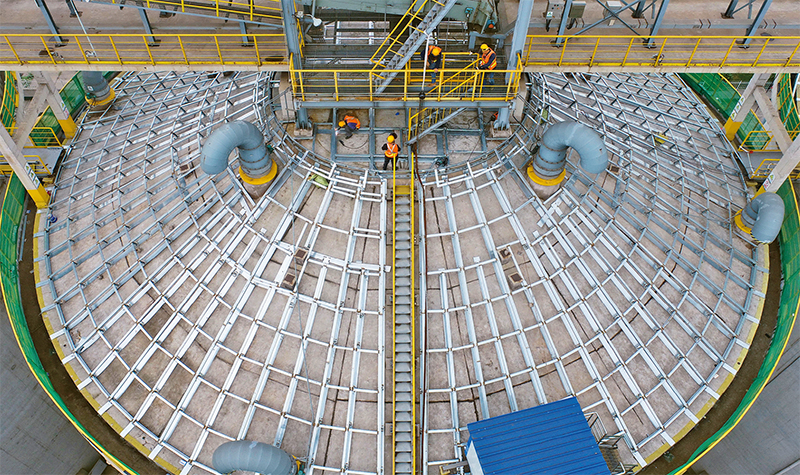 近年來,我國糧食倉儲設施規模不斷增加、功能顯著提升、儲備能力明顯增強,總體達到世界較先進水平。圖為2021年9月25日,工人在中儲糧唐山直屬庫糧食倉儲項目建設工地施工?!⌒氯A社記者 楊世堯/攝