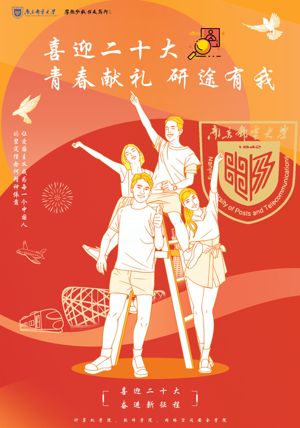 經專家評審,評選出《喜迎二十大,回望來時路》《青春獻禮二十大,研途有我新征程》《傳戰郵精神 承國脈擔當》《喜迎二十大 奮進新征程》等62項獲獎作品。通信與信息工程學院,電子與光學工程學院、柔性電子(未來技術)學院,計算機學院、軟件學院、網絡空間安全學院,自動化學院、人工智能學院,理學院,管理學院,傳媒與藝術學院,馬克思主義學院,外國語學院等9家單位獲優秀組織獎。