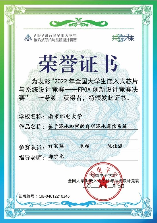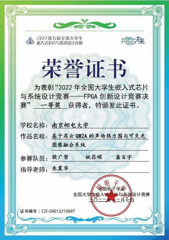 我校學生在2022年全國大學生嵌入式芯片與系統設計競賽——FPGA創新設計競賽決賽中獲一等獎