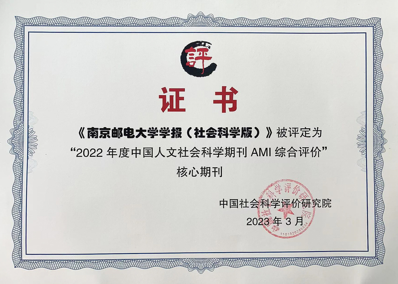 近日,中國(guó)社會(huì)科學(xué)評(píng)價(jià)研究院正式發(fā)布《中國(guó)人文社會(huì)科學(xué)期刊AMI綜合評(píng)價(jià)報(bào)告(2022年)》,《南京郵電大學(xué)學(xué)報(bào)(社會(huì)科學(xué)版)》入選核心期刊目錄,這是學(xué)報(bào)社科版辦刊工作取得的階段性重要成果。