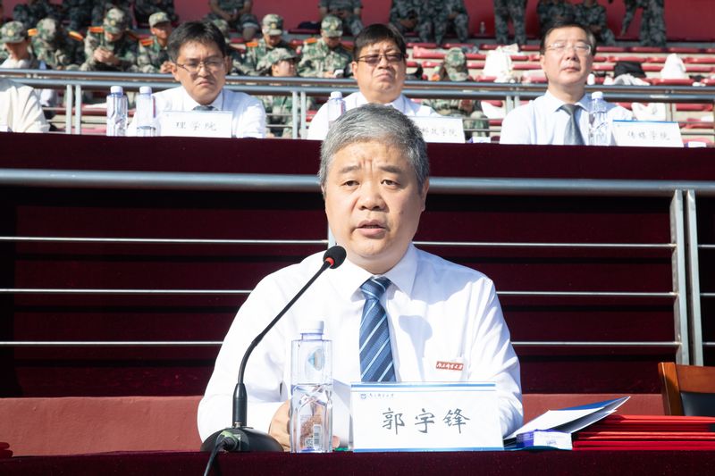 黨委學生工作部部長、學生工作處處長、人民武裝部部長李曉華主持軍訓成果匯報會