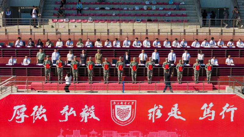 秋意清涼,朝陽璀璨。迎著第一縷陽光,9月24日早晨,南京郵電大學2024級本科生新生開學典禮暨軍訓成果匯報會在仙林校區主體育場隆重舉行。校黨委書記郭宇鋒,校長葉美蘭,某駐寧部隊政治工作部副主任陳燕平,校黨委常委、副校長王友國,校黨委常委、副校長謝平,副校長趙強出席開學典禮。典禮由謝平副校長主持。