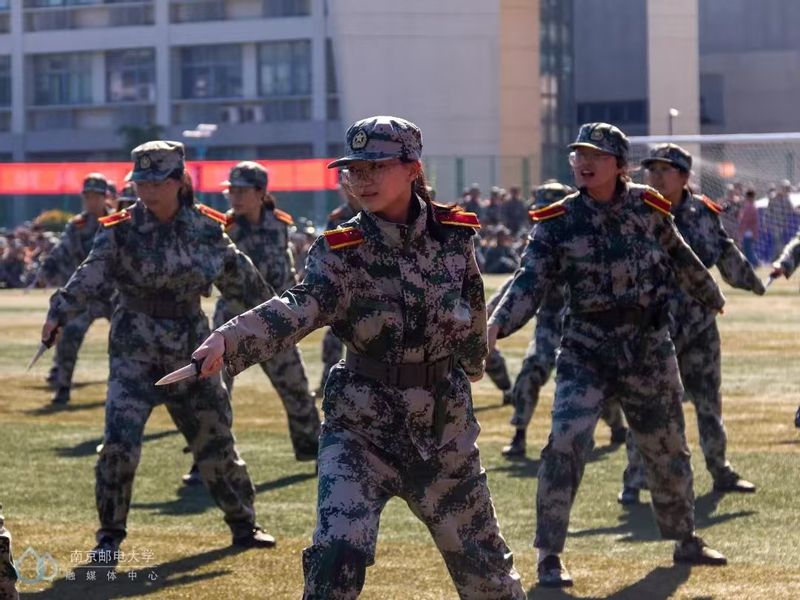分列式方隊步履鏗鏘地依次通過主席臺,他們昂首挺胸、神采飛揚,以洪亮的口號、整齊的揮臂、堅定的腳步、昂揚的姿態展現了南郵學子熱情飽滿的精神風貌。好男兒勢不可擋,女兒郎巾幗風采,紅旗方陣整齊劃一,軍體拳表演虎虎生威,匕首操表演氣勢如虹,戰術演練、消防及應急救護訓練有素,現場掌聲雷動。