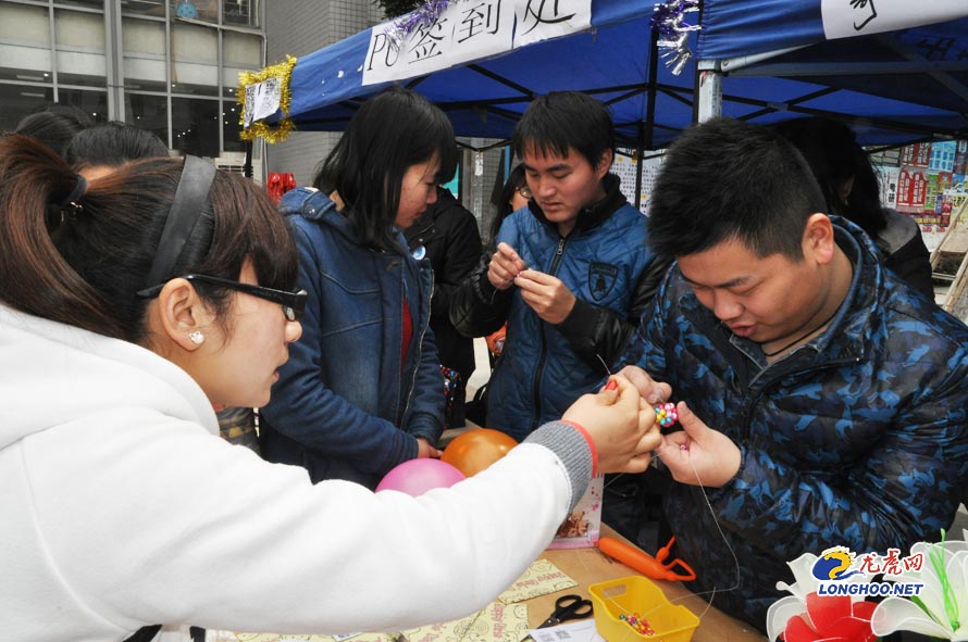 3月7日是女生節,南京郵電大學的女生們在學校的南二廣場用自己的巧手做成串珠、鑰匙扣等一件件小飾品送給過往的同學和老師。在這么一個富有女人味的現場,記者驚奇地發現不少男生的身影。男女搭配,精心編織,美麗的飾品躍然入目。男生的做派,看著似乎不那么“大男人”,卻讓女生別有一份溫情上心頭。