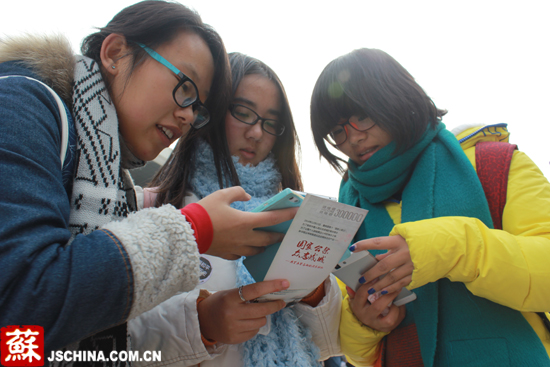 南郵的學子們拿著宣傳冊“加磚”。