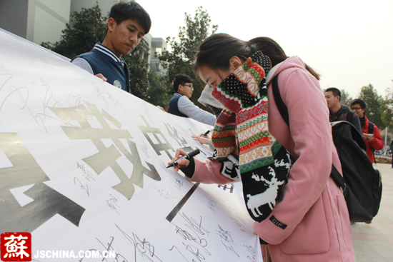在橫幅上,南郵學子簽下自己的名字。