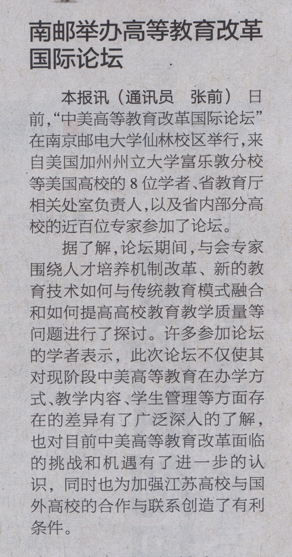 【江蘇教育報】南郵舉辦高等教育改革國際論壇
