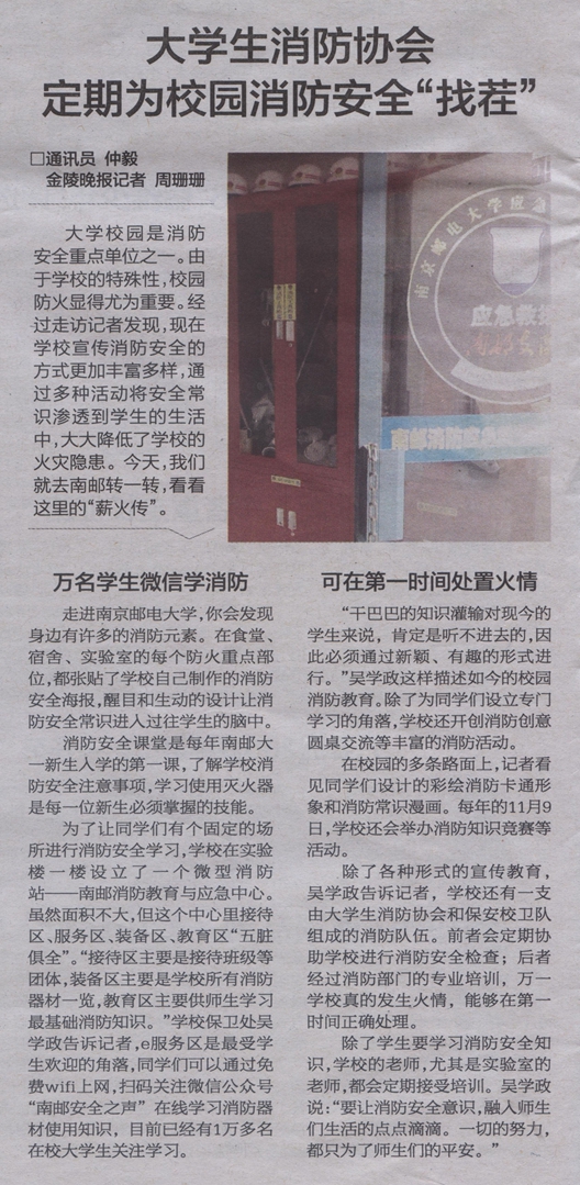 【金陵晚報(bào)】大學(xué)生消防協(xié)會定期為校園消防安全“找茬”