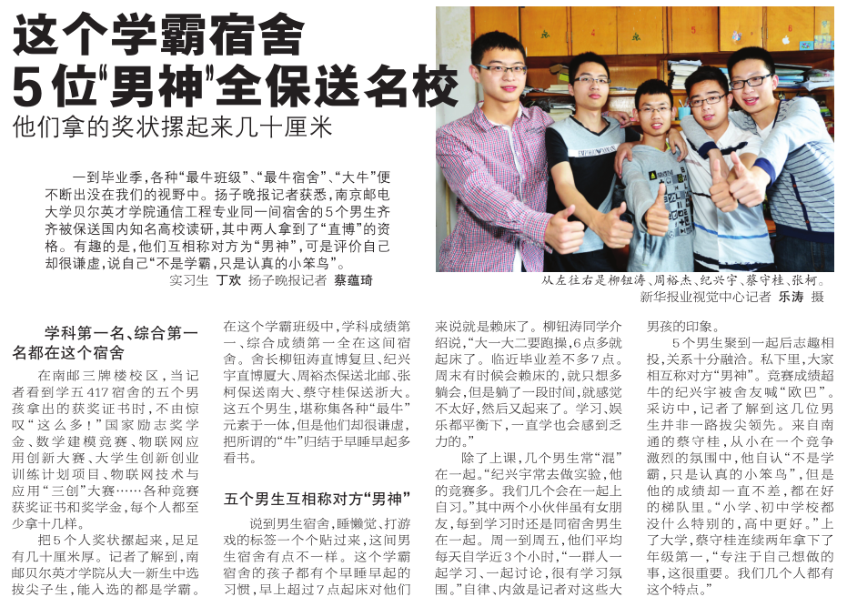 【揚子晚報】這個學霸宿舍5位“男神”全保送名校
