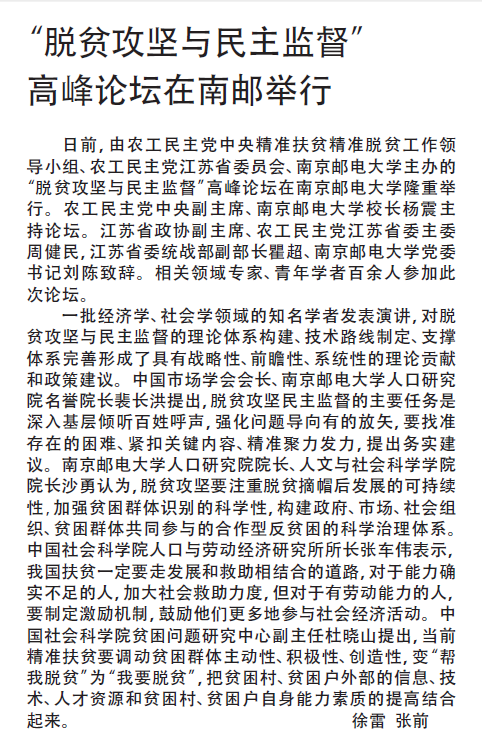 【新華日報】“脫貧攻堅與民主監督”高峰論壇在南郵舉行