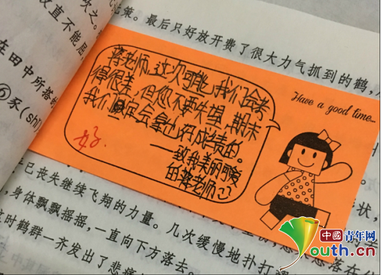 學(xué)生給南京郵電大學(xué)研究生支教團(tuán)團(tuán)長(zhǎng)蔣麗婷的留言。蔣麗婷 供圖
