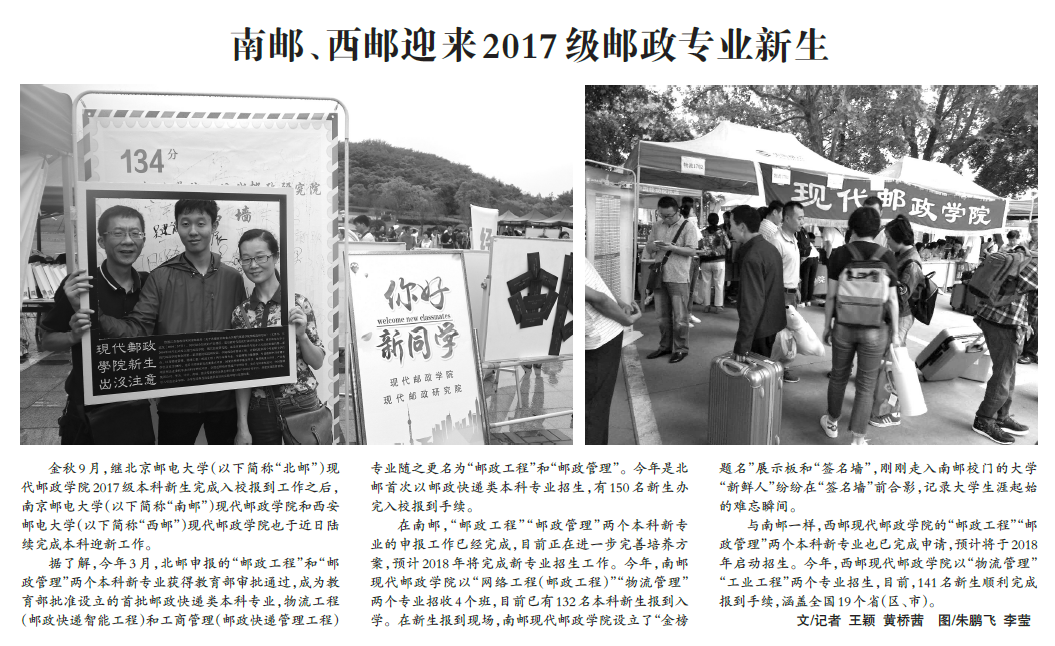 【中國郵政快遞報】南郵、西郵迎來2017 級郵政專業(yè)新生