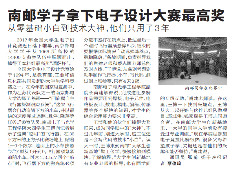 【揚子晚報】南郵學子拿下電子設計大賽最高獎