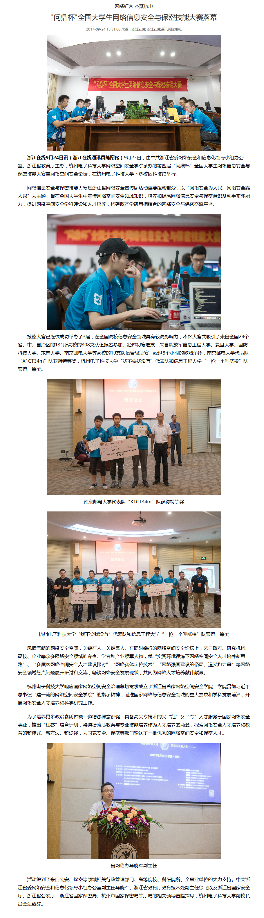 【浙江在線】"問鼎杯"全國大學生網絡信息安全與保密技能大賽落幕