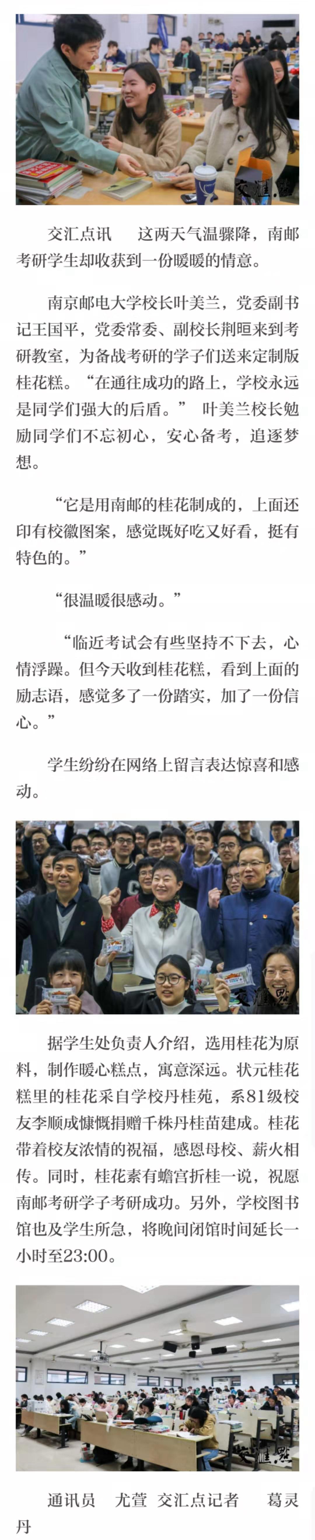 【交匯點】南郵校領導給考研學生送“桂花糕” 鼓勵追逐夢想