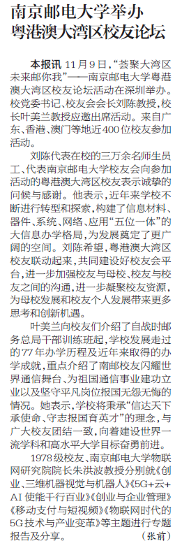 【人民郵電報】南京郵電大學(xué)舉辦粵港澳大灣區(qū)校友論壇