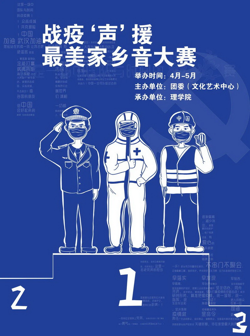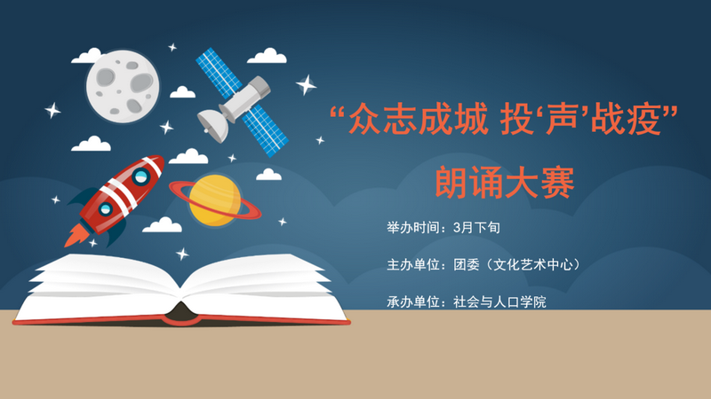 本次活動由社會與人口學院承辦,以“眾志成城,投‘聲’戰疫”為主題,同學們通過朗讀的方式,展示了自己的才華,分享了疫情中的思考,歌頌戰疫英雄,大聲頌出對美好未來的期待。