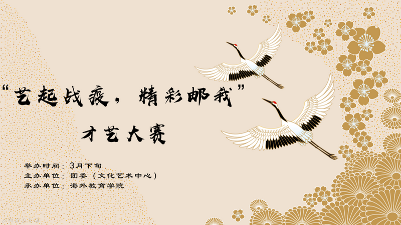 本次活動由海外教育學院承辦,以“藝起戰役,精彩郵我”為主題,通過才藝展示的方式,展現出同學們的青春活力和積極向上的樂觀精神。精彩的才藝展示可以成為融化冰雪的陽光,用藝術傳遞關懷,助力戰疫。