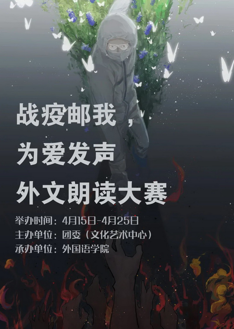 本次活動由外國語學院承辦,以“戰疫郵我,為愛發聲”為主題,同學們結合了自身的專業特色,通過外文朗誦的方式,讓更多人聽到中國聲音,感受到我們的祝福,共同書寫共建人類命運共同體的戰“疫”新篇章。