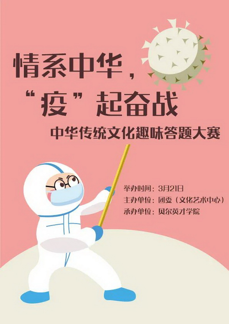 本次活動由貝爾英才學院承辦,以“情系中華,‘疫’起奮戰”為主題,通過中華傳統文化趣味問答的形式,用有趣、易接受的方式,增加了同學們對傳統文化的了解。讓大家在愉悅的氛圍中,共同溫習了源遠流長、博大精深的中華傳統文化,一同弘揚經典,傳承經典。