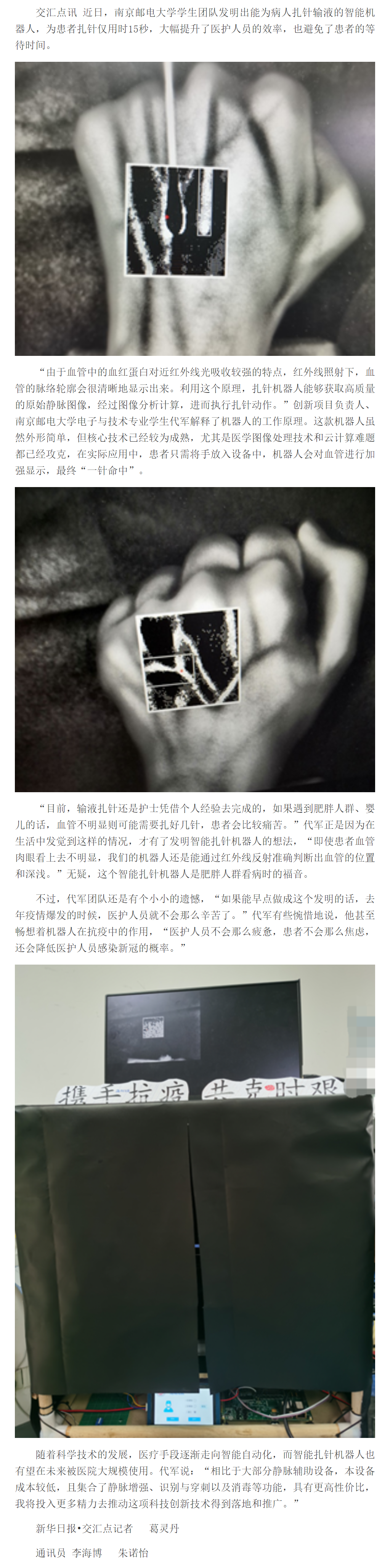 | 【新華日報客戶端】機器人給病人扎針輸液?南郵學子打造醫療新幫手 |