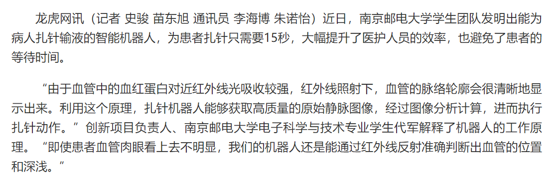 | 【龍虎網(wǎng)】機(jī)器人給病人扎針輸液?南郵學(xué)子打造醫(yī)療新幫手 |